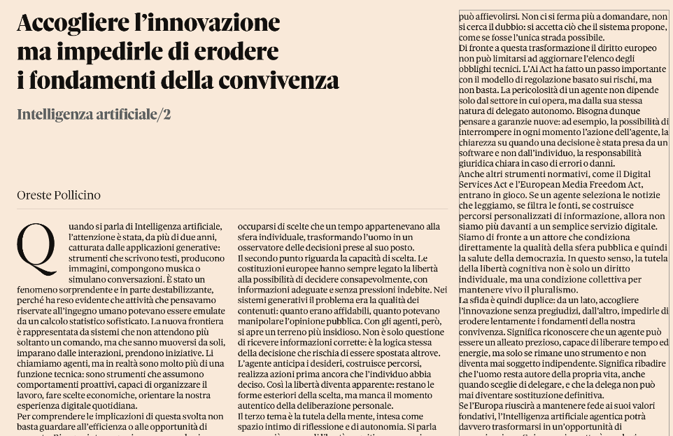 Orestepollicino.eu è una piattaforma che raccoglie, sistematizza e interconnette contenuti informativi, progetti scientifici, consulenziali destinati a un pubblico più ampio e news relative all’attività accademica, professionale, istituzionale e divulgativa di Oreste Pollicino, professore ordinario di diritto costituzionale e della regolamentazione dell’intelligenza artificiale presso l’Università Commerciale Luigi Bocconi.