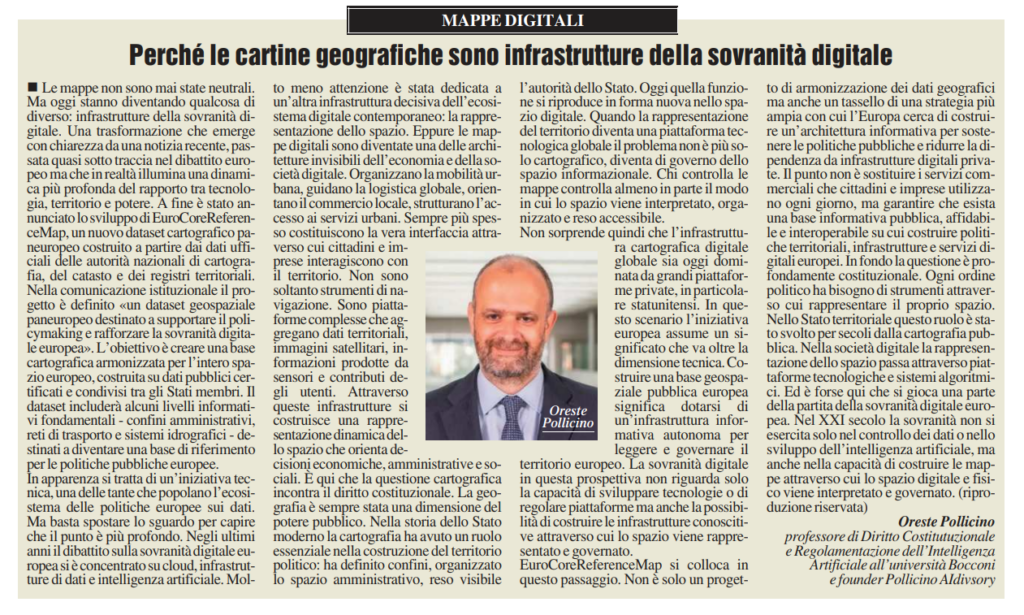 Il nuovo articolo di Oreste Pollicino all’interno della rubrica “Mappe Digitali” per Milano Finanza