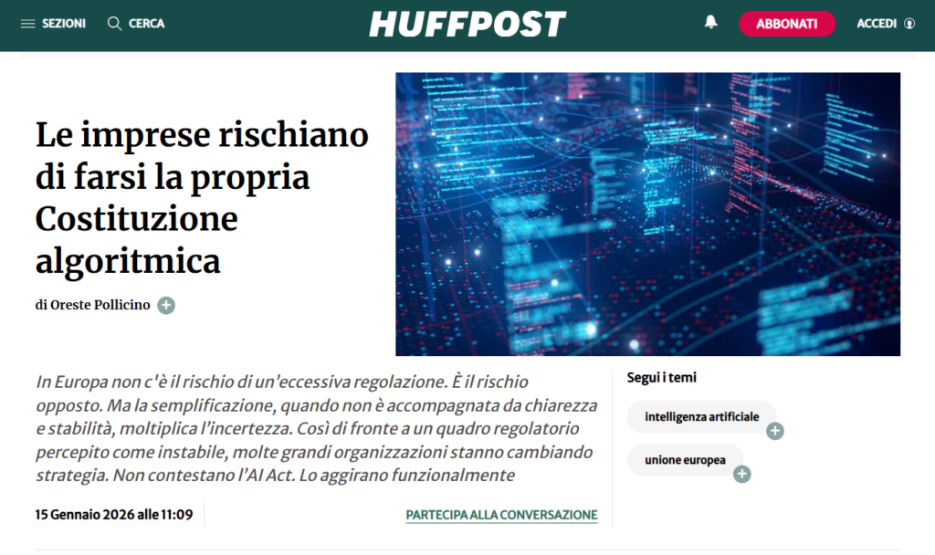 Il nuovo articolo di Oreste Pollicino all’interno della rubrica “Governare l’AI” per Huffington Post