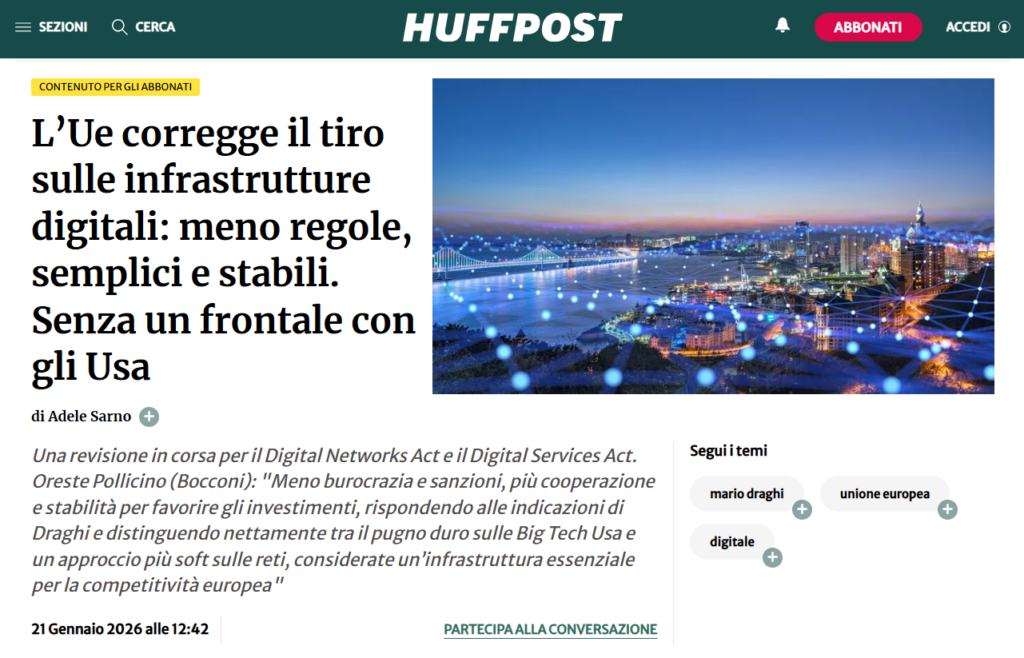 L’Ue corregge il tiro sulle infrastrutture digitali: meno regole, semplici e stabili. Senza un frontale con gli Usa, Huffington Post, 21 Gennaio 2026