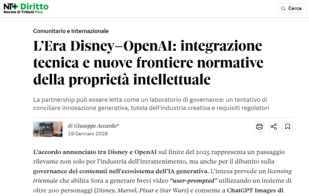 L’Era Disney-OpenAI: integrazione tecnica e nuove frontiere normative della proprietà intellettuale