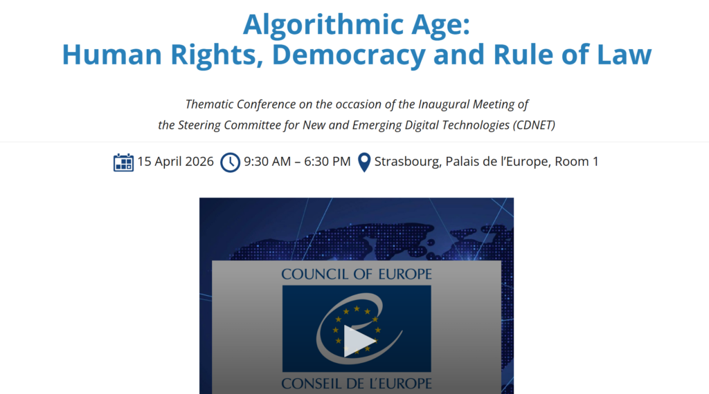Algorithmic Age: Human Rights, Democracy and Rule of Law, Palais de l’Europe, Strasbourg, 15 Aprile 2026