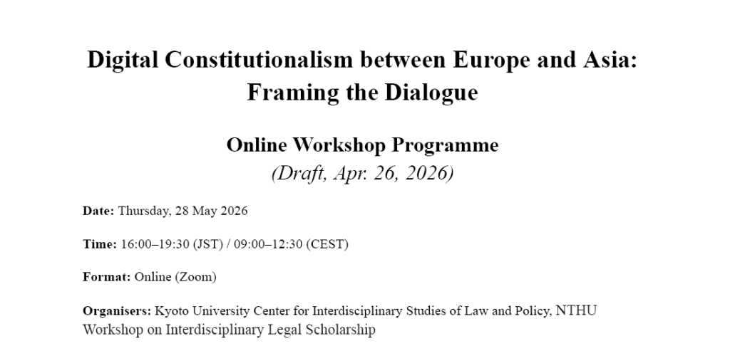 Digital Constitutionalism between Europe and Asia, Kyoto University Center for Interdisciplinary Studies of Law and Policy, Online, 28 Maggio 2026