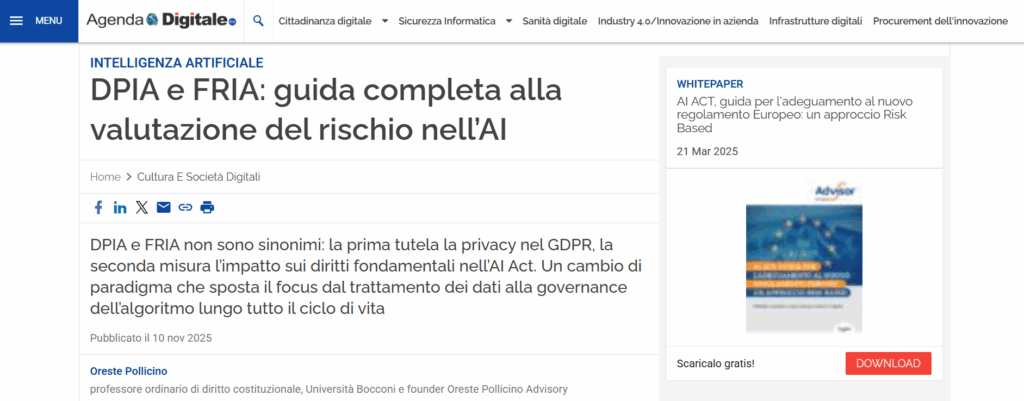 DPIA e FRIA non sono sinonimi: la prima tutela la privacy nel GDPR, la seconda misura l’impatto sui diritti fondamentali nell’AI Act. Un cambio di paradigma che sposta il focus dal trattamento dei dati alla governance dell’algoritmo lungo tutto il ciclo di vita.