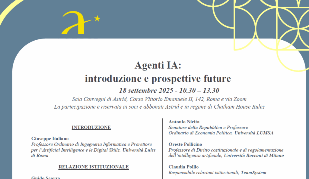 Agenti IA: introduzione e prospettive future, Sala Convegni di Astrid, Roma, 18 Settembre 2025