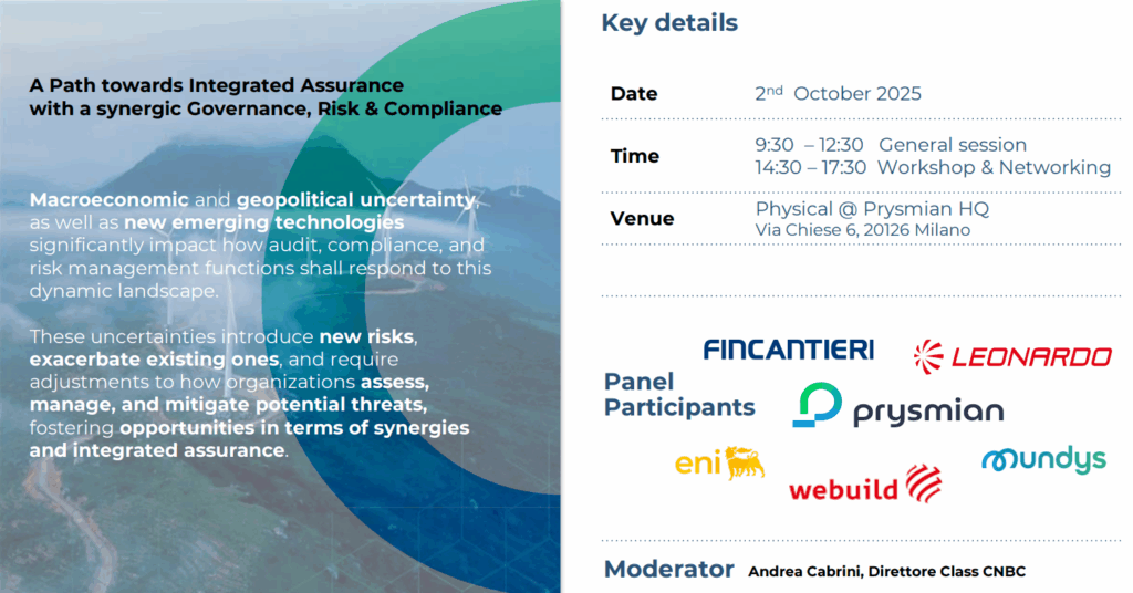 A Path towards Integrated Assurance with a synergic Governance, Risk & Compliance, Prysmian, Milano, 2 Ottobre 2025