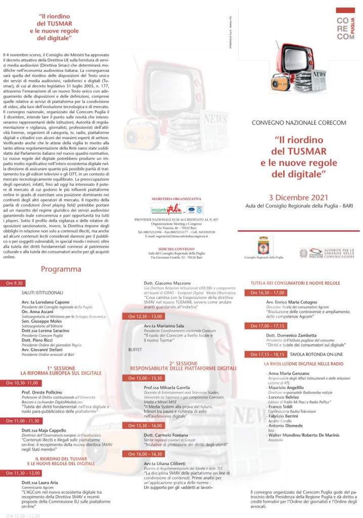 Convegno Nazionale Corecom “Il riordino del TUSMAR e le nuove regole del digitale”
