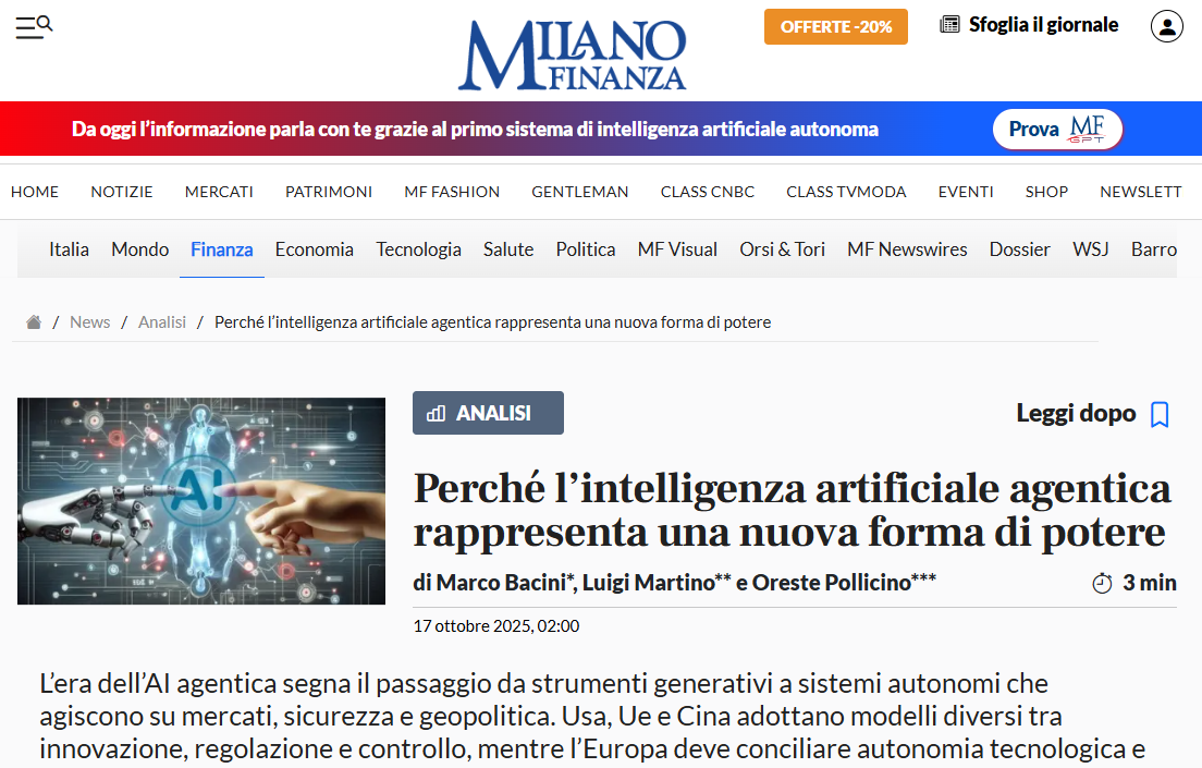 L’era dell’AI agentica segna il passaggio da strumenti generativi a sistemi autonomi che agiscono su mercati, sicurezza e geopolitica.